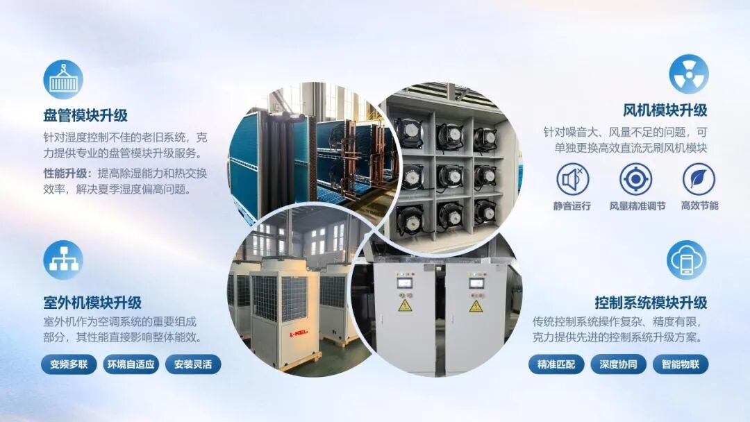 同時,針對不同醫療區域的特點,克力提供定制化的升級方案,包含空調機組模塊升級、室外機系統優化以及智慧控制系統升級。