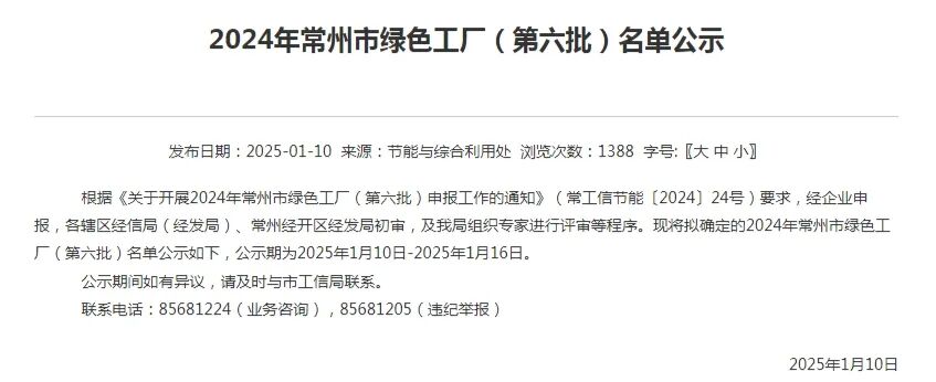 2024年,常州市工信局公布了綠色工廠企業名單(第六批),江蘇克力空調有限公司榮耀上榜,這也標志著克力“環保節能,市場導向”的經營道路上又邁出關鍵的一步。