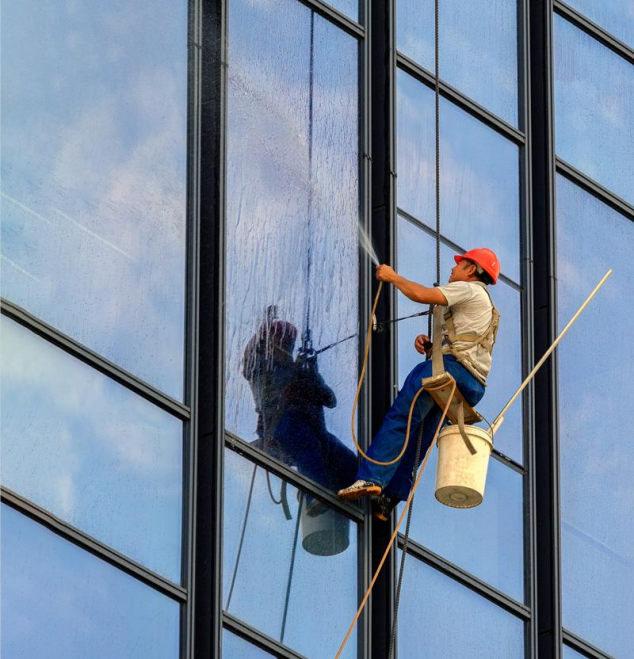 從事高空外墻清洗的人員是必須要經過專業培訓的高空操作工人,利用高空操作繩、安全繩、高空坐板進行自上而下的針對建筑物外墻進行清洗。高空外墻清洗的工作風險比較大,所以安全是非常重要的。在清洗作業的時候一定要選擇質量合格的操作繩和安全繩,還要進行合理的清洗劑配比,才能讓建筑物的外墻清洗得干凈,讓建筑物的外墻材料壽命延長。
