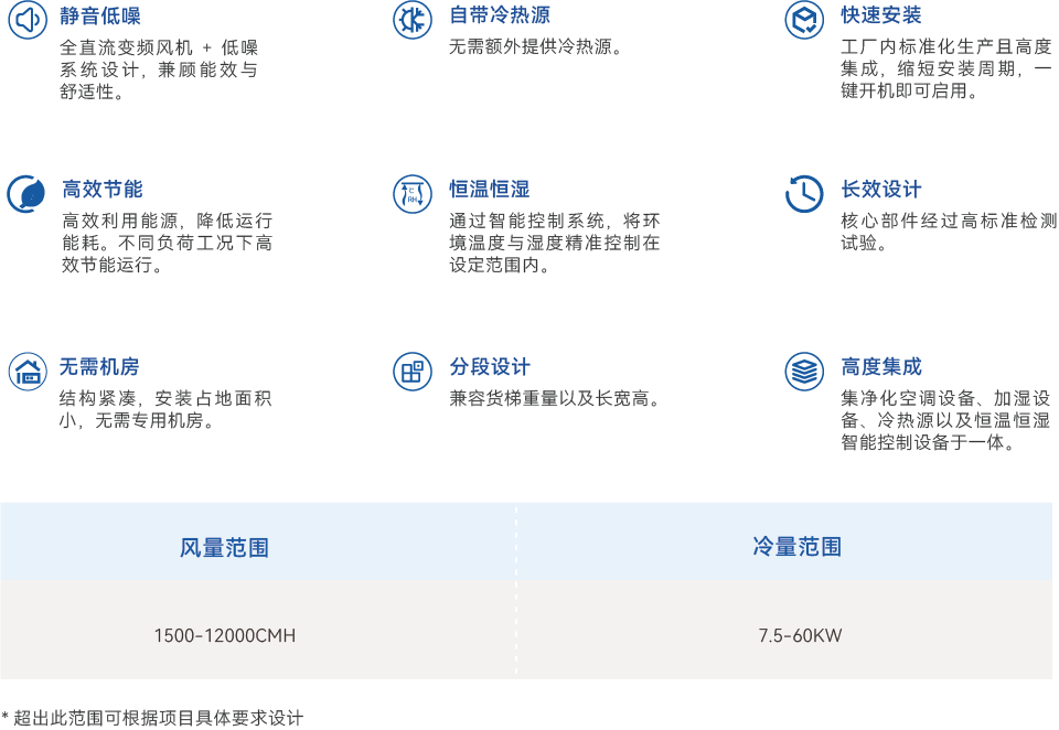 3、空調機組、制冷系統、加濕器、控制系統及控制系統外圍附件在工廠內安裝并且接好線至控制系統,整個系統高度集成;