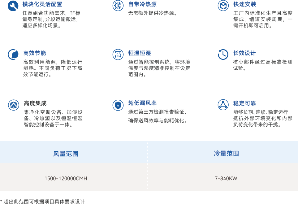 適用場合:半導體、電子、光學、制藥、實驗室、新能源、煙草、新農業、軍工、醫院、寫字樓等場合