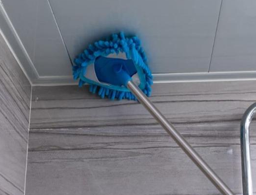 用舊毛巾擦拭衛生間墻壁和潔具,用鏟刀去除頑固污漬,最后用拖把擦拭地磚...